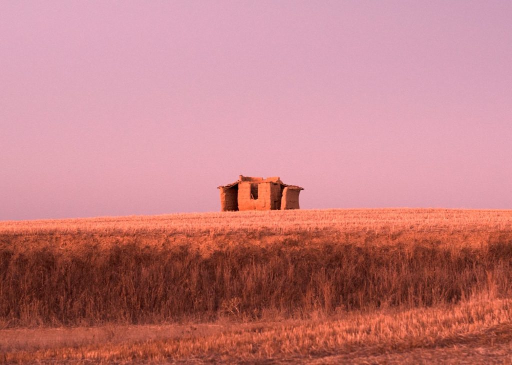 6. Arquitectura de tierra, hecha con la tierra del suelo del que volverá a formar parte en no mucho tiempo, volvemos siempre al lugar del que procedemos. Este palomar está fotografiado en el ocaso, haciendo un símil del momento en el que se encuentran estos elementos icónicos terracampinos.