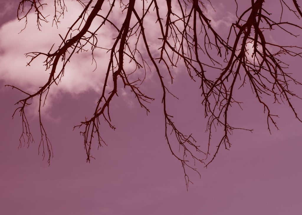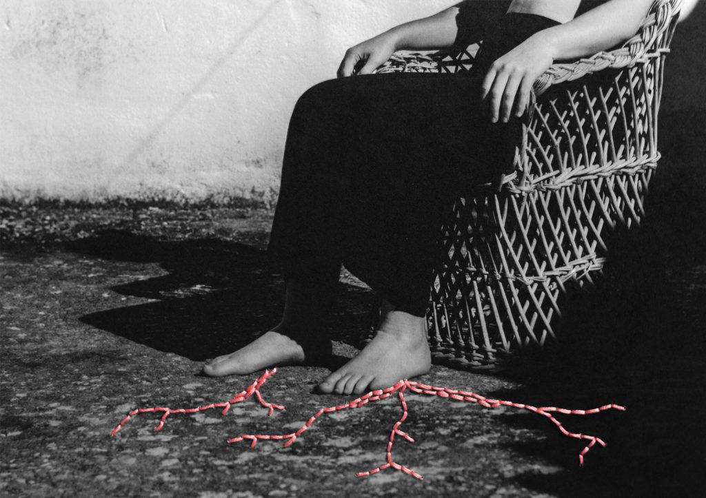 El color del hilo elegido es el rosa, que evoca ternura. Según la psicología del color, el rosa simboliza la amabilidad, lo positivo, sentimental, la sensibilidad y la infancia. He querido escoger este color que acompaña la idea enunciada del proyecto, añadiendo valor simbólico a las imágenes. Las tonalidades cálidas (naranja, rosa, magenta) se funden con el gris, blanco y negro. Formalmente encontramos licencias visuales con intervenciones expresivas y emotivas. Se utilizan elementos que actúan como metáforas (raíz, rama, rayo, tronco, grieta…) con fuertes connotaciones simbólicas.