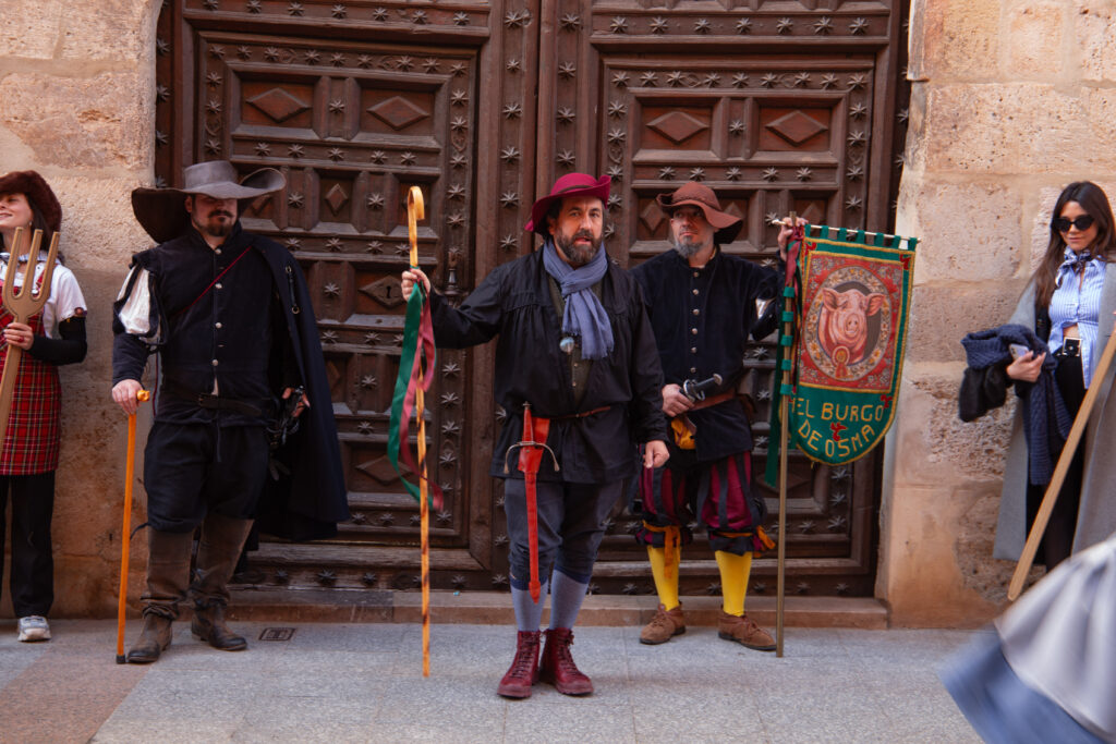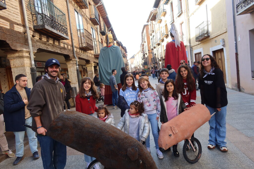 Así, escoltados por dulzaineros y gigantes, recorren las calles principales del Burgo declamando ritualmente la historia, la prohibición y enunciando una pícara pregunta: “Niñas y niños del Burgo de Osma, ¿queréis que se sigan haciendo encierro de cochinos?” A lo que ellos responden (a excepción de algún bribón que disfruta llevado siempre la contraria) SÍIIIIIIIIII al unísono y entonces comienza la persecución.