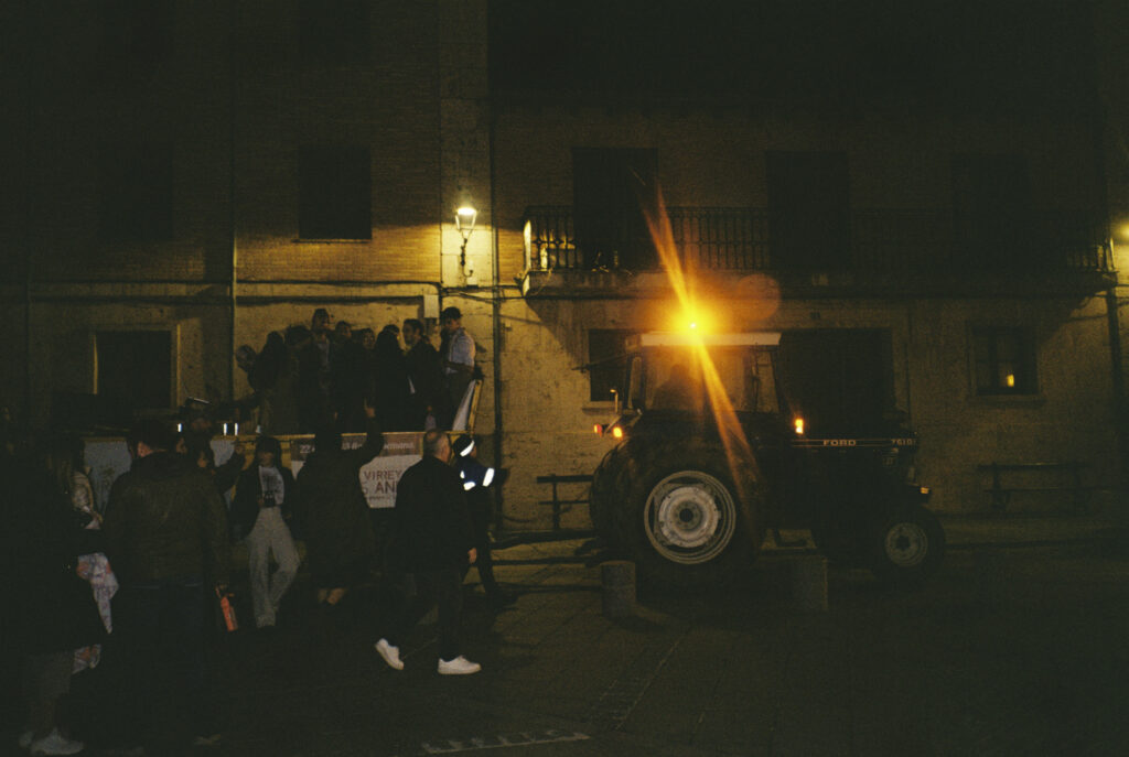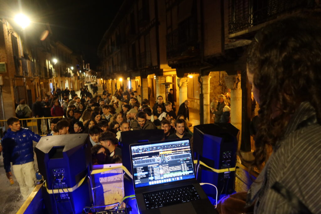 Llegaba nuestro turno y un momento épico e inolvidable, de la noche y de nuestras vidas: Un pasacalles con los djs -nosotros- subidos a un remolque tirado por un tractor. Recorrimos la calles principal del Burgo de Osma, la verdad, botado fuego puro. Fue un hito histórico de nuestras andanzas como revista/asociación y (¡¡digo más!!) quizá de las andanzas del castellanismo contemporáneo en general.