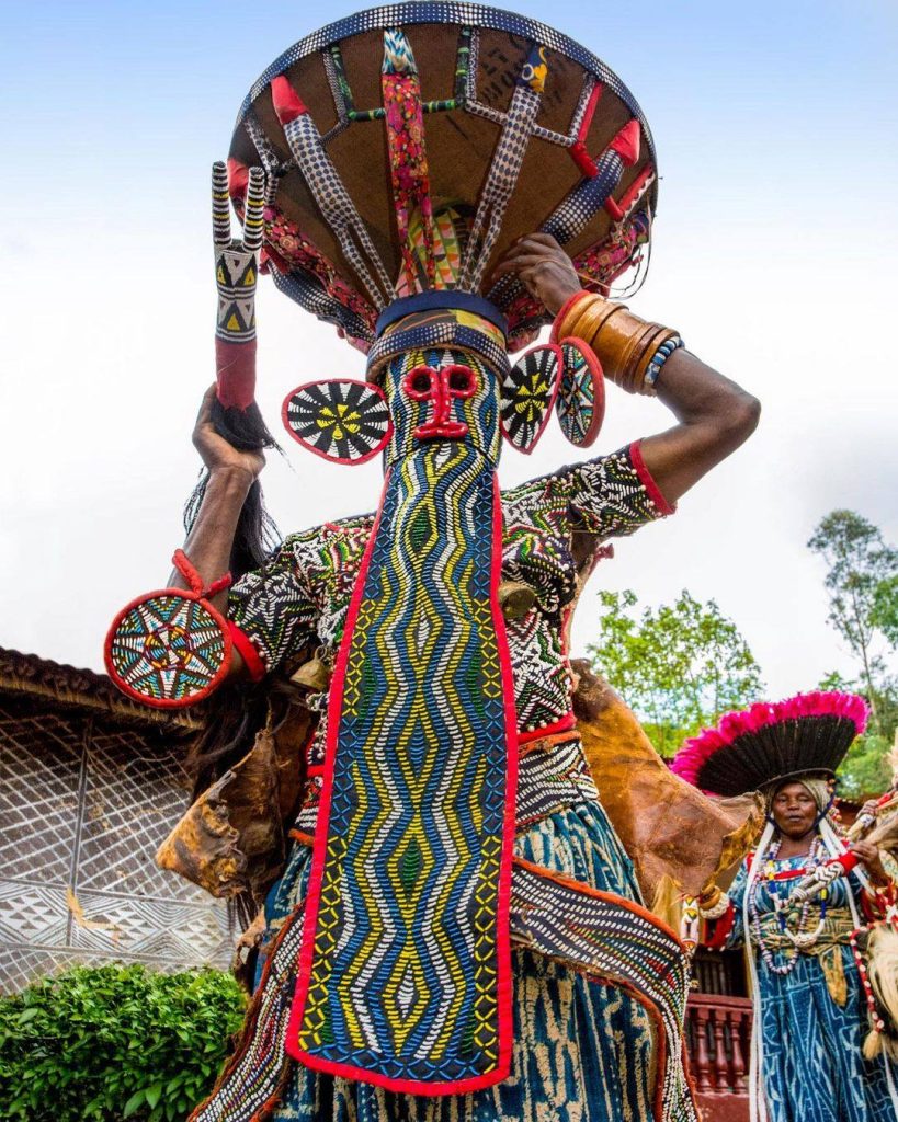 Precisamente en ese “más allá” se encuentran los llamados “ancestros”, esto es, los familiares difuntos de la generación presente que influyen en el mundo de los vivos ayudando a su estirpe o castigándoles si no se comportan como es debido. En una sociedad en la que lo intangible está tan presente y la línea entre ambos mundos es tan difusa, no es de extrañar que las personas que son capaces de entrar en contacto con “el otro lado” desempeñen un papel fundamental. Así, además del rey, sociedades secretas como el kun’gang (misteriosos “brujos” capaces de comunicarse con los no-vivos y caracterizados con máscara negra de terrorífica trompa) son respetados y temidos a partes iguales.