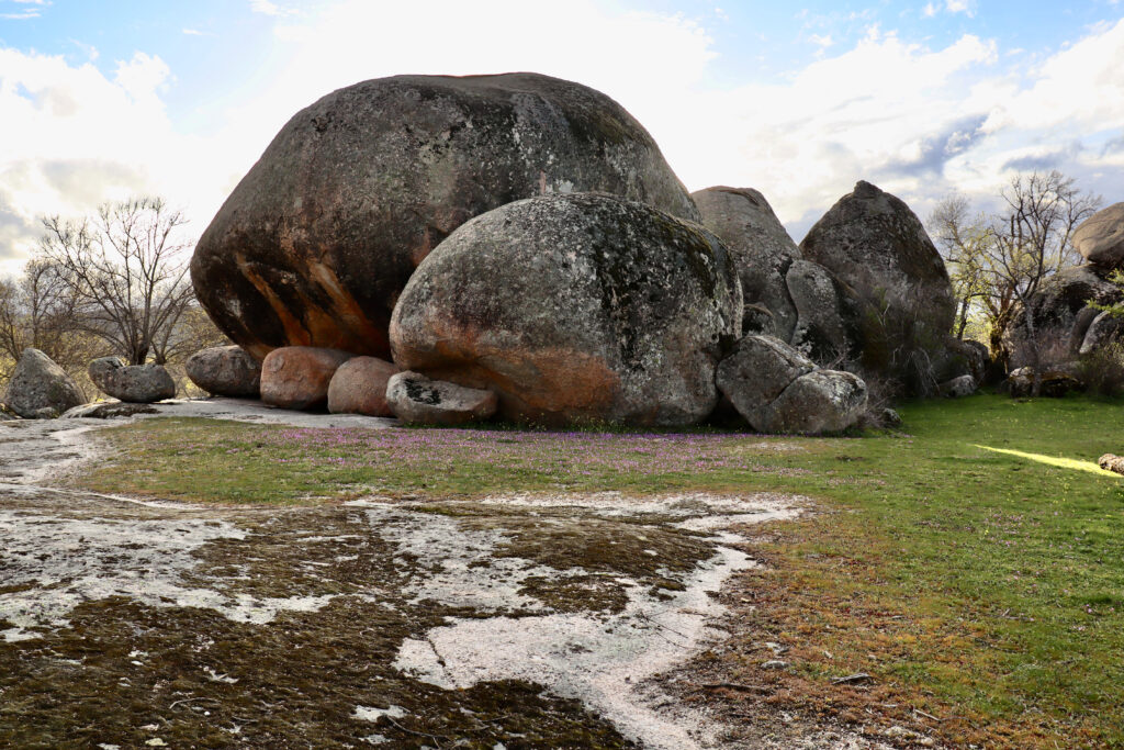 Además, la vegetación que convive con estos gigantes bloques hace aún más atractivo el paisaje. En nuestro paseo, podemos caminar entre bosques de robles, fresnos o encinas testigos del espectáculo. La planicie al pie de las montañas hace que sea este un lugar luminoso y facilita escudriñar sus recovecos y colarse entre las sombras que confieren los gigantes tolmos y bolos.