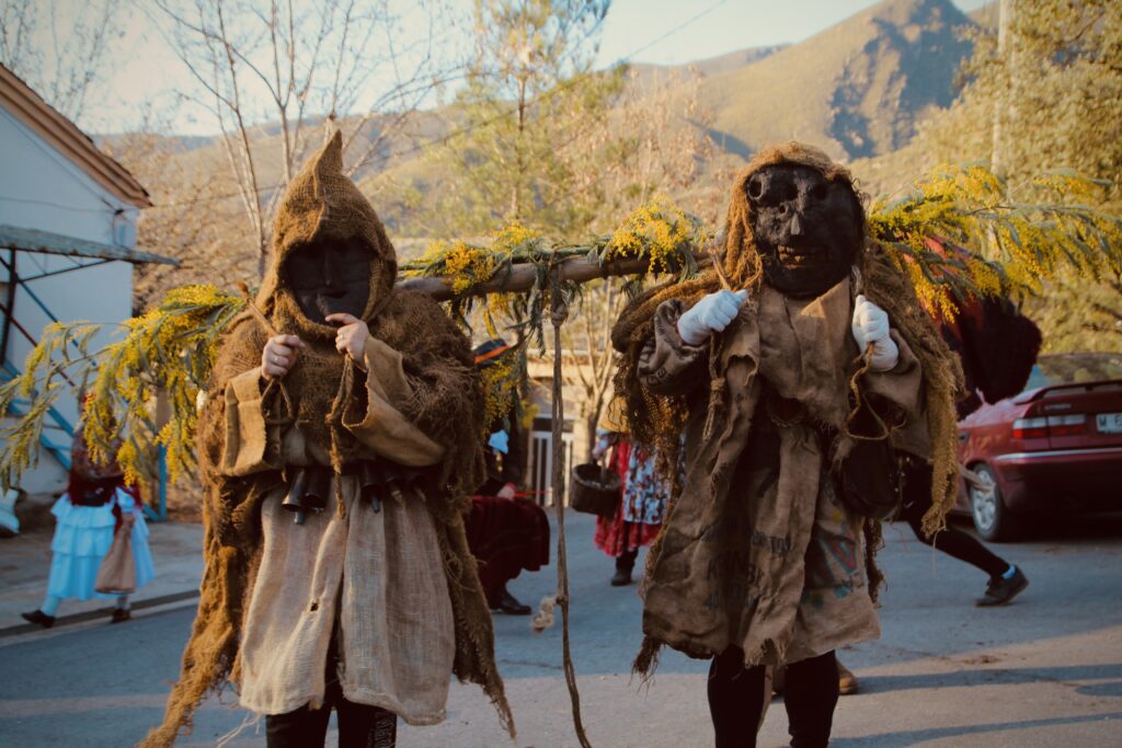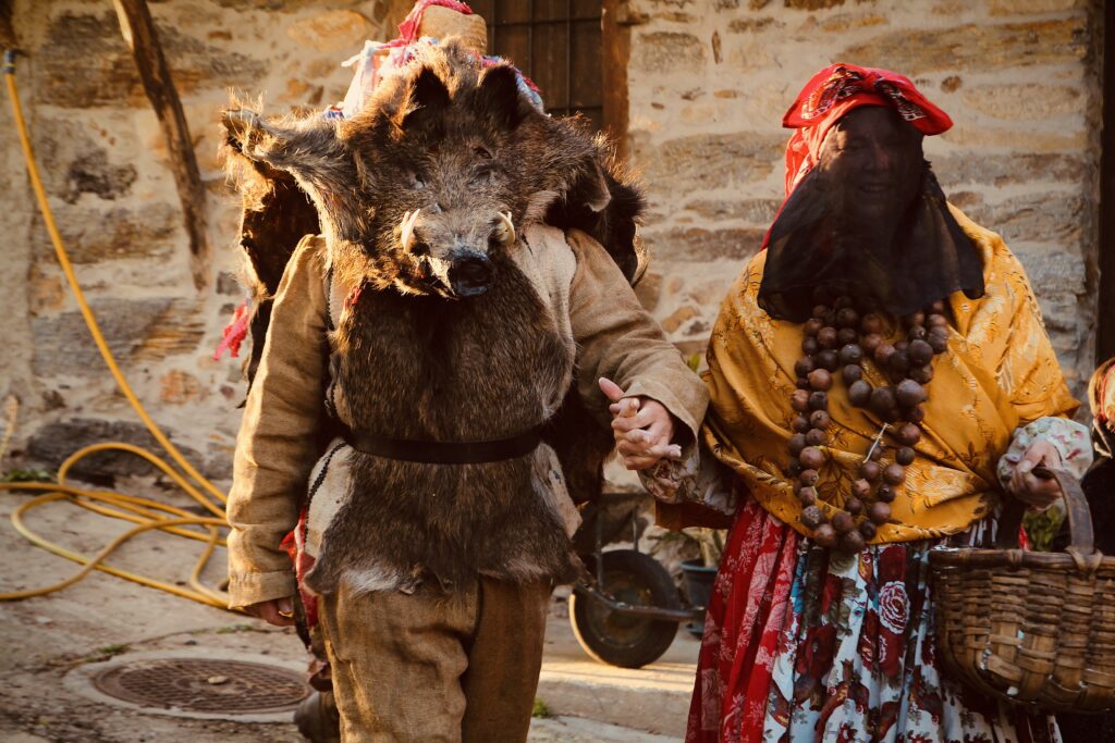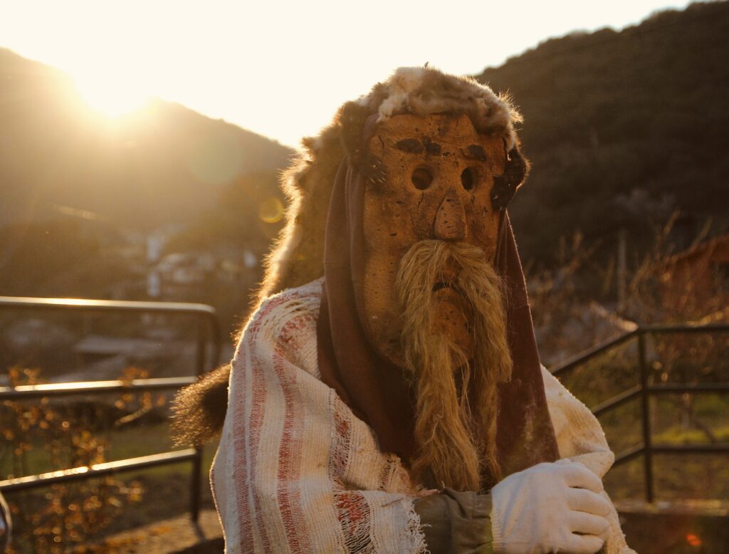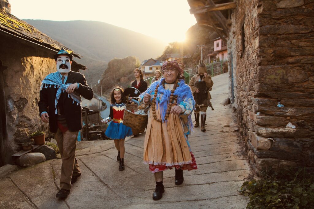 El entroido, como los cucurrumachos y otras mascaradas, es una tradición ancestral, probablemente precristiana, relacionada fundamentalmente con el paso a la adultez, con la representación y transmutación de roles, y por supuesto con la diversión. Consiste en beber, bailar, cantar y jugar. Jugar a disfrazarse, a mancharse, a darse sustos y a disfrazarse, o, como se dice aquí más propiamente, “revestirse”. Todo de manera orgánica (los disfraces, hechos con elementos de la vida rural, vuelven a incorporarse a la misma), vecinal y cultural, manteniendo vivo el eco de un folklore poderoso, lleno de colores y de significación vital.