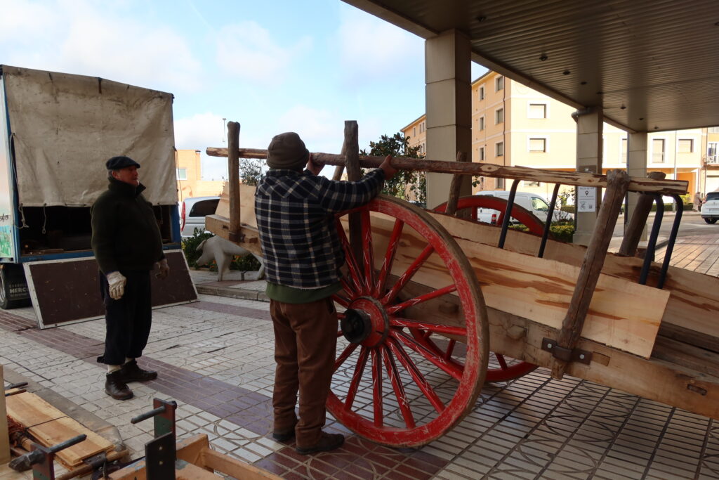 Armando los conoció en Presura, la “Feria Nacional para la Repoblación de la España Rural” y se le encendió la bombilla tratando de buscar una solución al pasacalles no motorizado, pero al final, lejos de solucionar solamente un problema, la Cabaña Real de Carreteros enriqueció el encuentro convirtiéndose, para mí, en el elemento más especial y distintivo de esta edición. Hablamos con ellos un poco en la cafetería, antes de que todo empezara, y les ayudamos a descargar el carro del camión y a montarlo mientras nos iban contando todos estos datos que desconocíamos por completo.