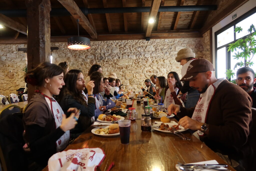 Gente joven de todas partes descubriendo y disfrutando Soria, saboreando la maravilla que es estar en un pueblo donde (a pesar del ayuntamiento) eres libre y tienes todo a la mano y te relacionas con gente de otras edades y aprendes a cada paso historia, etnografía, tradición y cosas geniales. Donde comes genial por poco dinero y bailas bailes ancestrales, que pueden ser jotas o Paquito el chocolatero.