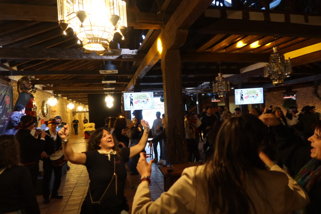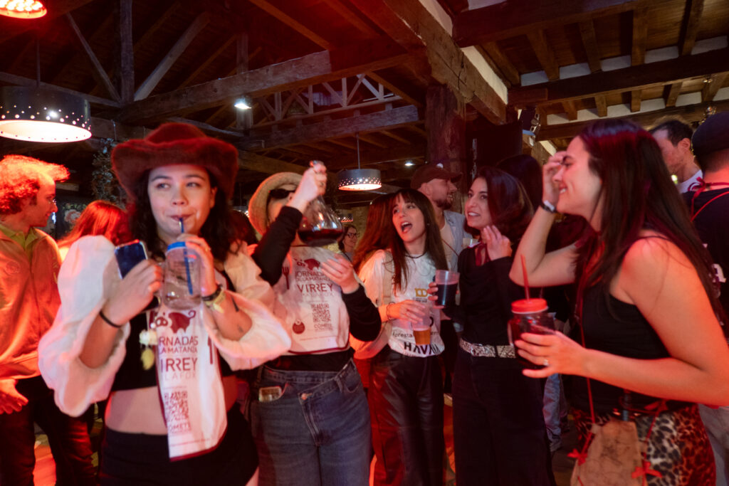 La comida estuvo amenizada por un dj set -durísimo- de Dj Plástico. El año pasado le conocimos en este mismo contexto y nos gustó tanto que lo fichamos para el Circo Ambulante. Clásicos de trap, de reggaeton, de hiperpop…Lo mejor de todo su actitud, que es majísimo, y su séquito: La sociedad del plástico, como se llaman ellos, o Los 15 de plástico, como les llamamos nosotros. Grupo mixto y ultramoderno, todos venidos de Madrid o Barcelona, todos puro pikete y todos, como él, majísimos y divertidísimos. No es por fastidiar, pero los más urbanitas, los que más bailaban. Para que luego digan. Y lo que no es bailar: los primeros en el taller de serrar, los primeros guiando cochinos y gigantes, los primeros pogueando en el pasacalles…