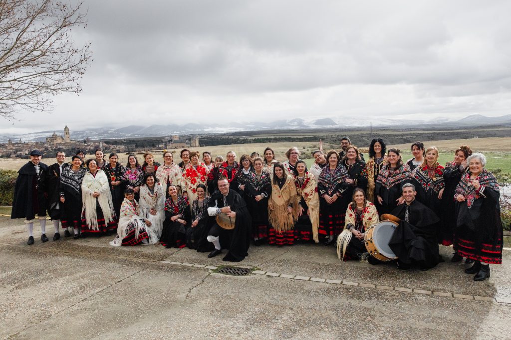 Feli nos da más datos sobre la celebración. Nos explica que hay 150 águedas en la asociación de las que en realidad participan en los actos poco más de 50. Que todo lo eligen por votación, aunque por ejemplo el puesto de alcaldesa, más que votarse, es una cosa que se va pasando. “Venga pues nos apuntamos nosotras dos este año”. Que cada una se hace su traje durante meses y meses o lo hereda, pero que las monteras de alcaldesas son de la asociación, se van rotando con el puesto. Le preguntamos por esto que nos contaban las mujeres en el bar de que cada vez va menos gente a las de Zamarramala porque hay águedas por muchos otros pueblos ¿Zamarramala fue de las primeras? ¿¿De las primeras?? cariño, Zamarramala es el origen de esta tradición. Las aguedas empiezan aquí. ¿no te sabes la historia? ¿y tú eres periodista?