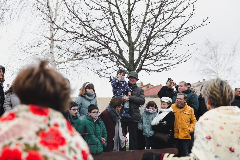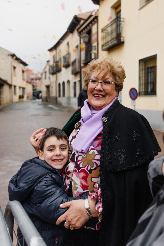 Llevaban 5 años con el debate y este año ha salido en votación -por fin- que sí. Recordad que, como contamos en el artículo de las águedas de Andavías en 2022, tradicionalmente las águedas eran una cofradía de mujeres casadas por la iglesia, aunque últimamente se estaban aceptando también las casadas por lo civil…y por fin, desde este año recién estrenado, también las solteras. Le digo que ya me había yo fijado en que había águedas muy jóvenes y al buscarles la alianza no la había visto. Mucho te fijas tú, ay…Pues sí es una cosa muy buena porque qué tendrá que ver, se puede ser una mujer estupenda sin ningún hombre, ya ves tú, de hecho muchas les toca estar atadas a un lastre que las tira para abajo…muchas veces es mejor sola que mal acompañada y para nada se necesita a ninguno para ser un mujerón y ser feliz. La tradición hay que ir renovándola y actualizándola proque si no se muere y desaparece. El último rato de charla con nosotras lo tiene con su nieto agarrado a la pierna, todo impaciente esperando a que le toque de una vez la atención de la abuela Feli.
