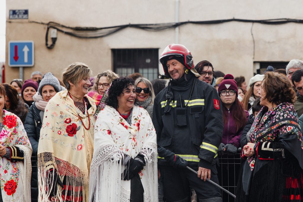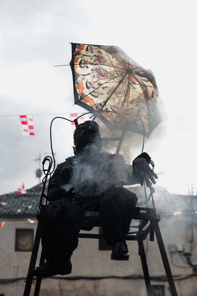 El frío cortante de la mañana dificulta las cosas, pero la rueda de águedas no cesa en sus jotas, ni los músicos en sus dulzainas hasta que se consigue calcinar al muñeco. Por cierto que, hablando de fotógrafos (especialmente de fotógrafos desagradables), este momento concreto de la quema del pelele hace que me plantee su lugar en esta celebraciones. Obviamente son fundamentales, pero el espacio que ocupan, en este caso literalmente el centro, a escasos centímetros del pelele y las alcaldesas, en mitad de la rueda de baile, literalmente en medio de la plaza, de la acción…se sale de ojo por completo y estropea la imagen del acto que tenemos todos los que estamos en la plaza observándolo, viviéndolo.