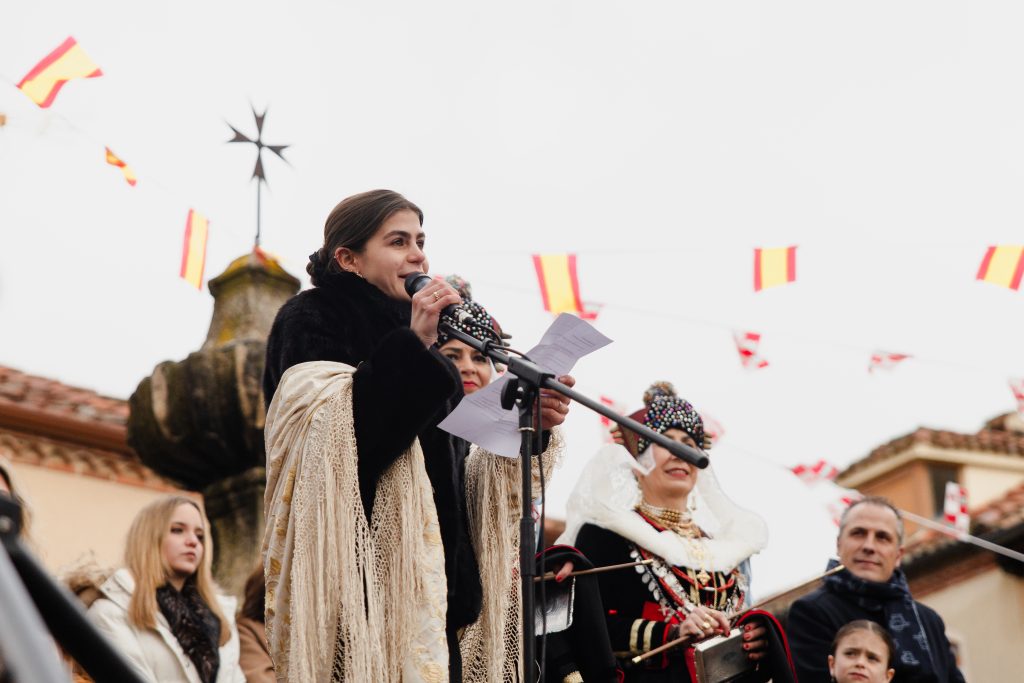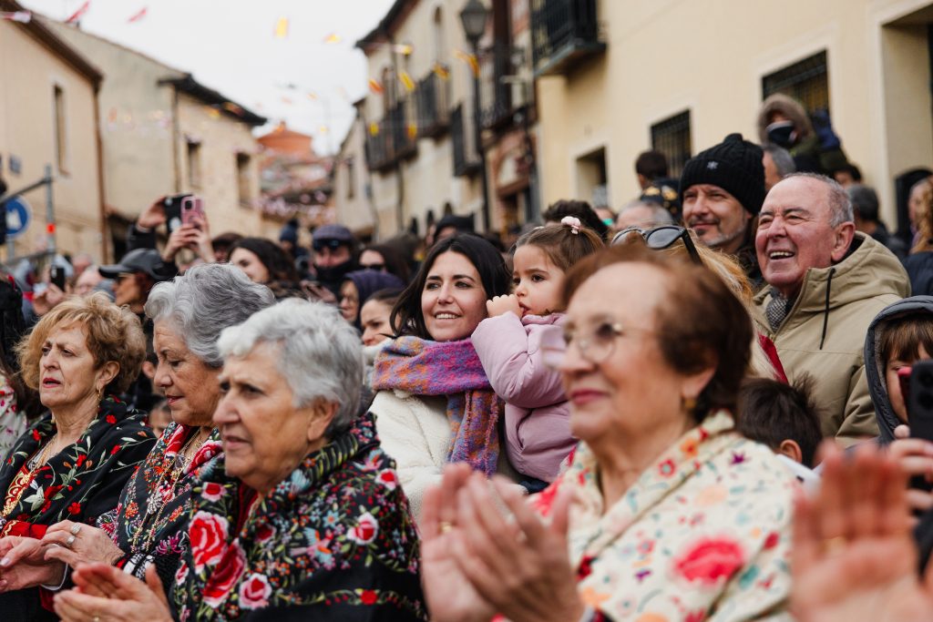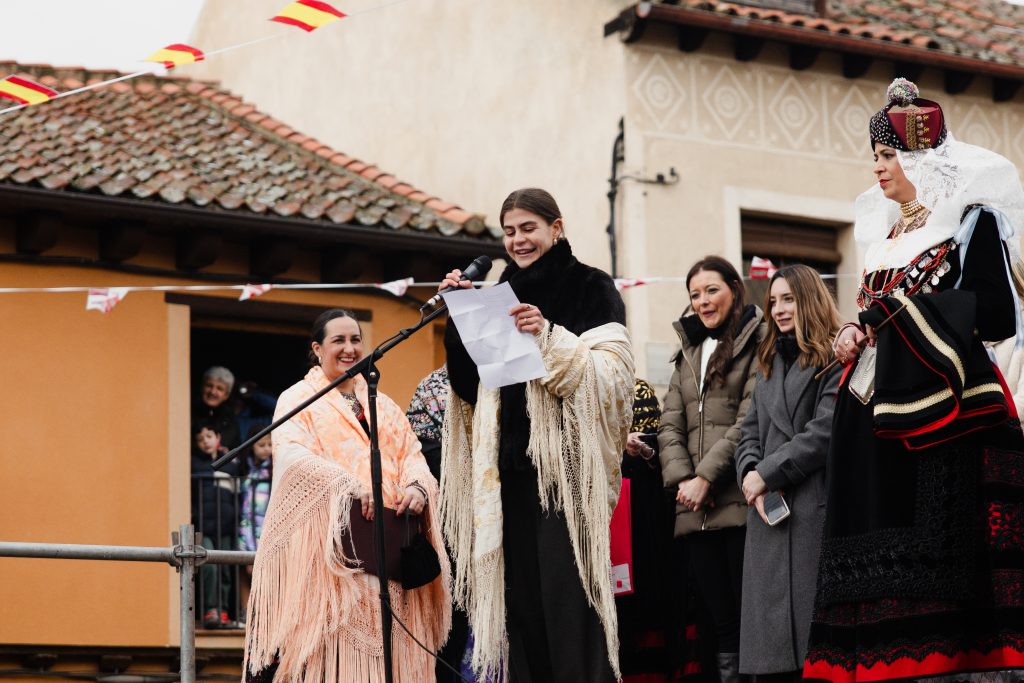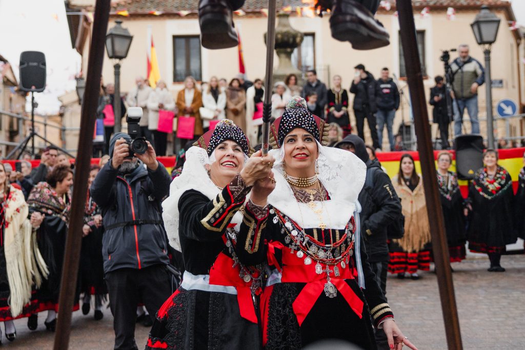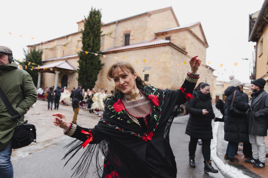 Pero sigamos con la procesión, que ya ha empezado y recorre unas calles empapadas, llenas de esa nieve marrón y traslúcida que tanto moja y molesta. A pesar de ello, la comitiva es una cascada de color y regocijo. Las mujeres bailan, las dulzainas suenan, el pueblo fiel procesiona sonriente, impasible al frío. Llegada a un punto próximo al Alcázar, la comparsa se detiene y las dos alcaldesas bailan unas jotas que, según me cuentan, se ofrecen al edificio, cuya importancia clave en esta celebración se entenderá leyendo el artículo sobre el mito de Santa Águeda