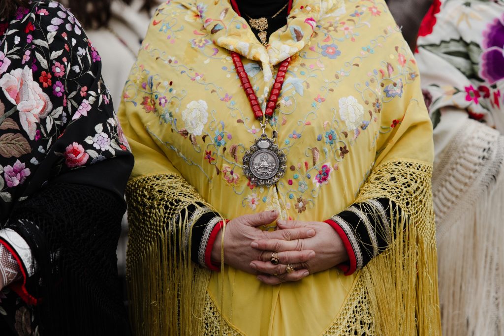 Pregunto si este acto es tradicional, si ha estado incluido siempre y también pregunto por los hombres que escoltan la figura de la santa, pertrechados con armas medievales y por los músicos. Si siempre han estado ahí o si antes eran exclusivamente mujeres. Me dan un Sí, eso siempre ha sido así bastante tajante, casi defensivo, que me hace pensar que he hecho bien en no plantear mi pregunta de manera demasiado directa. “Los hombres también participan, no es una celebración contra los hombres”, parecen querer decirme. Pero es verdad que yo lo proyectaba de una manera diferente, más radical. Una celebración no mixta. Por un día al año…tampoco es para tanto, ¿no? Yo me imaginaba literalmente a todos los hombres doblando el lomo como un día normal, e incluso cuidando la casa y asumiendo tareas domésticas si pilla en domingo como hoy, ¿por qué no? Por un día al año…