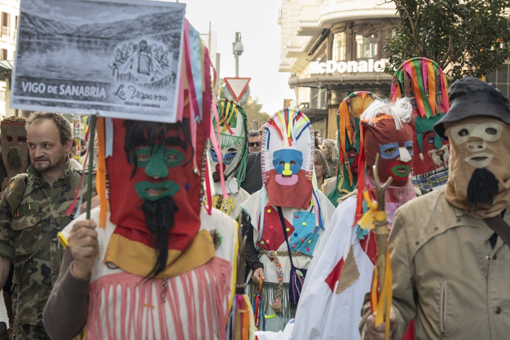 Las mascaradas de invierno visitaron la capital en una acción de visibilización del patrimonio cultural de las provincias de Galicia, Zamora y Asturias. Con un total de 12 representaciones, desde los Carochos de Riofrío hasta el Zangarrón de Sanzoles, estos ritos vinculados al solsticio de invierno representan el paso a la fertilidad y una muestra de la identidad más pura que lucha contra el olvido.