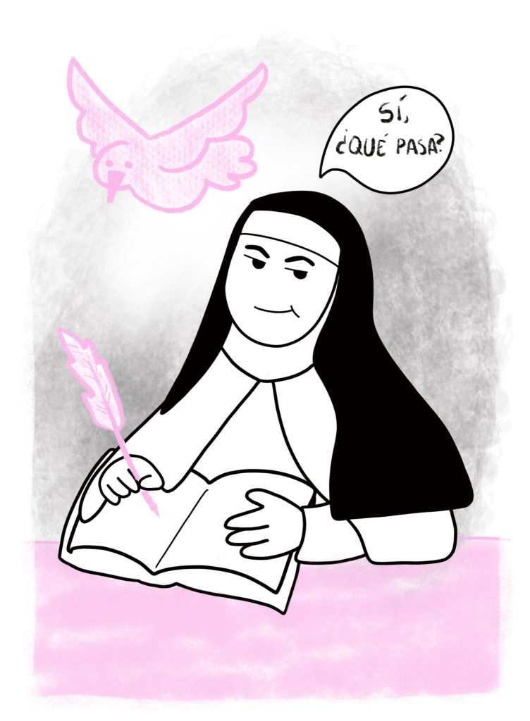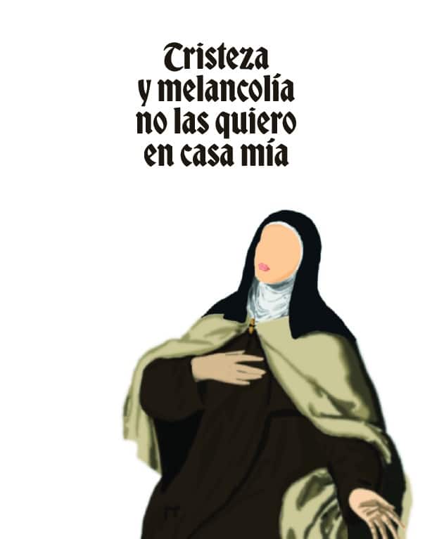 La verdad es que, por muy noble que fuera y por estrecha e íntima que fuera su relación con Dios, a Teresa le tocó penar de lo lindo. A los 23 años, 3 después de entrar en La encarnación, contrajo una enfermedad muy fuerte que la tuvo en cama años, llegando a entrar en un coma profundo de tres días, durante los que empezaron a prepararle la sepultura. Fiebres altísimas, desmayos, parálisis…muy poco a poco se fue recuperando, pero siempre estuvo enferma, aunque ella precisamente tomó esta recuperación como milagrosa y el dolor sólo la disgustaba en tanto la quitaba de estar de pie, arreando. El criterio médico actual sugiere que probablemente contrajo alguna infección agresiva que le afectó neurológicamente. Claramente, hay quien relaciona esto con sus episodios místicos de éxtasis y sus visiones (también hay quien habla de una ingesta sostenida de pan con moho). Lo que está claro es que Tresa sufrió de lo lindo y que el sentido del humor y la alegría no le salían gratis a ella tampoco. Aún así no dejó de hacer los caminos, de hacer la revolución, de ser la líder espiritual de muchísimas mujeres y también de muchos hombres. Junto a su amigo Juan de la Cruz, también poeta (y al que ella apodaba, por cierto “senequita”, por lo leído), co-fundó hasta 15 monasterios de frailes descalzos. La revolución no podía quedarse en una cosa femenina, aunque fue femenina en su origen y aunque sea la feminidad del asunto -lo siento- la parte que a mí más me interesa. Que fuera amiga de San Juan de la Cruz o sorteara a la santísima (y asquerosísima) Inquisición son procesos importantes, pero que a mí me interesan menos porque tocan menos la cuestión sororora.