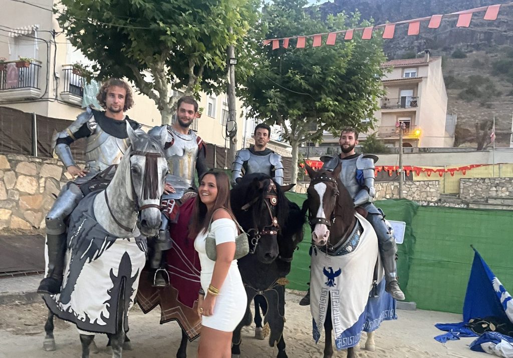 Caballos y caballeros, moriscos y judíos, alguna damisela oriental. La gente se hacía fotos con los actores, un grupo de chavales jóvenes que evidentemente estaban gozándose bastante la gira medieval que les había unido ese verano. Algunas ferias medievales son sencillamente una ristra de puestos artesanos, pero en Cañete todo el pueblo estaba volcado y disfrazadísimo, el propio pueblo estaba engalanado de pies a cabeza y lo mejor de todo: había un desfile popular de antorchas (sólo podía participar el que estuviera disfrazado, eso sí).