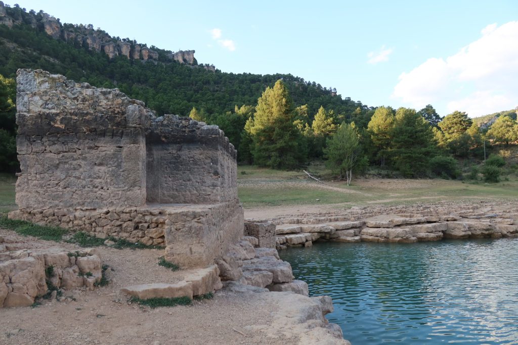 Al pie del agua, como tantas otras en Castilla, una edificación abandonada recordaba con belleza melancólica tiempos mejores. La serranía de Cuenca nos vigilaba las espaldas y, con esta luz rara, parecía más que nunca llena de siluetas de duendes conquenses.