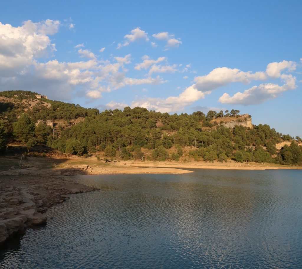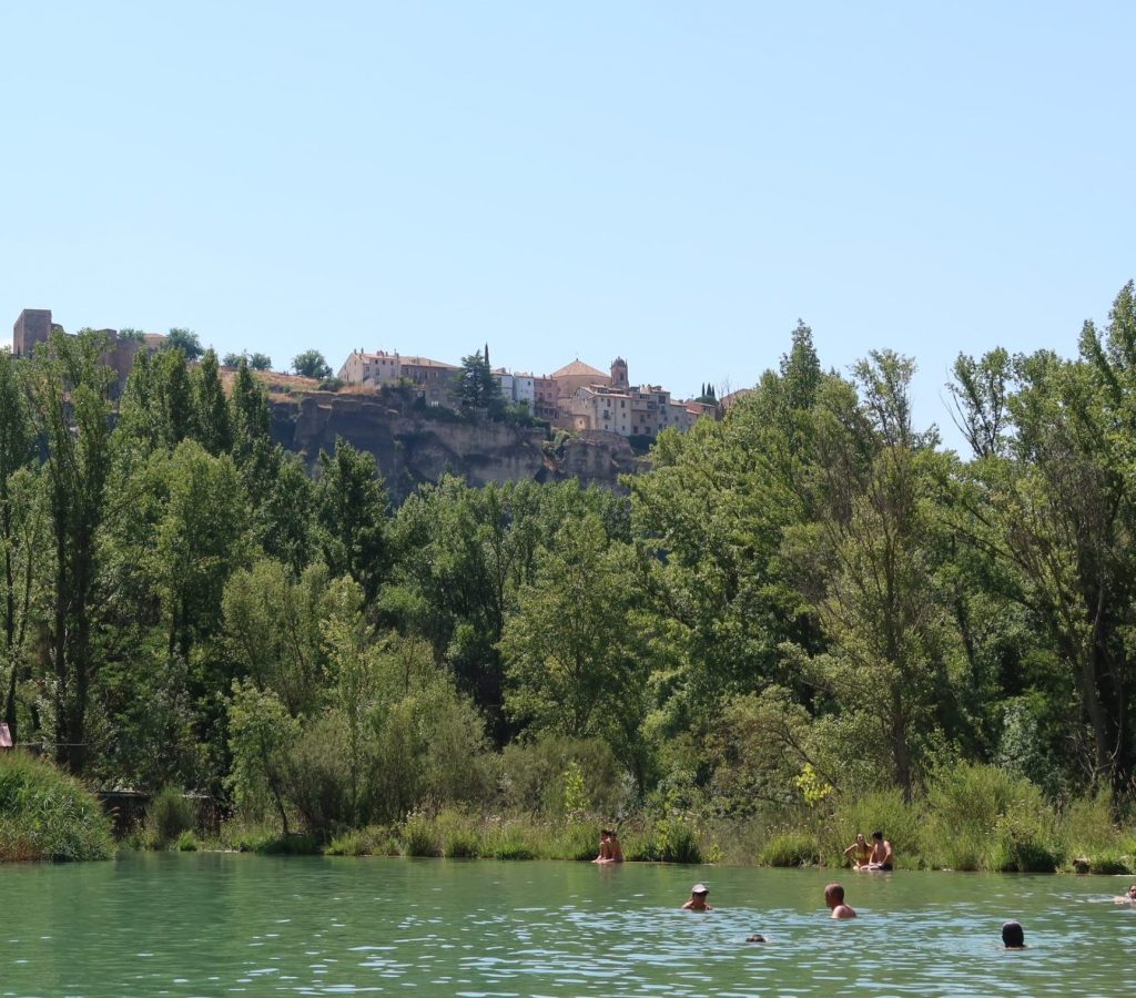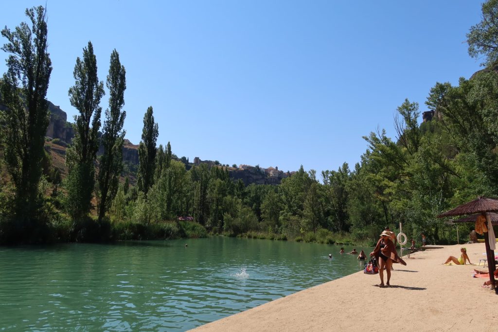 Como sabíamos de antemano que nos íbamos a achicharrar, además de comprar un flus-flus y un ventiladorcito, habíamos planteado todo nuestro itinerario para ir saltando de masa de agua en masa de agua. Justo acabábamos de publicar “Agua en Castilla” (de Miguel Sánchez), así que esto de que las masas de agua castellana articulasen nuestro itinerario nos motivaba mucho. La primera parada de nuestra ruta era la playa de Cuenca.