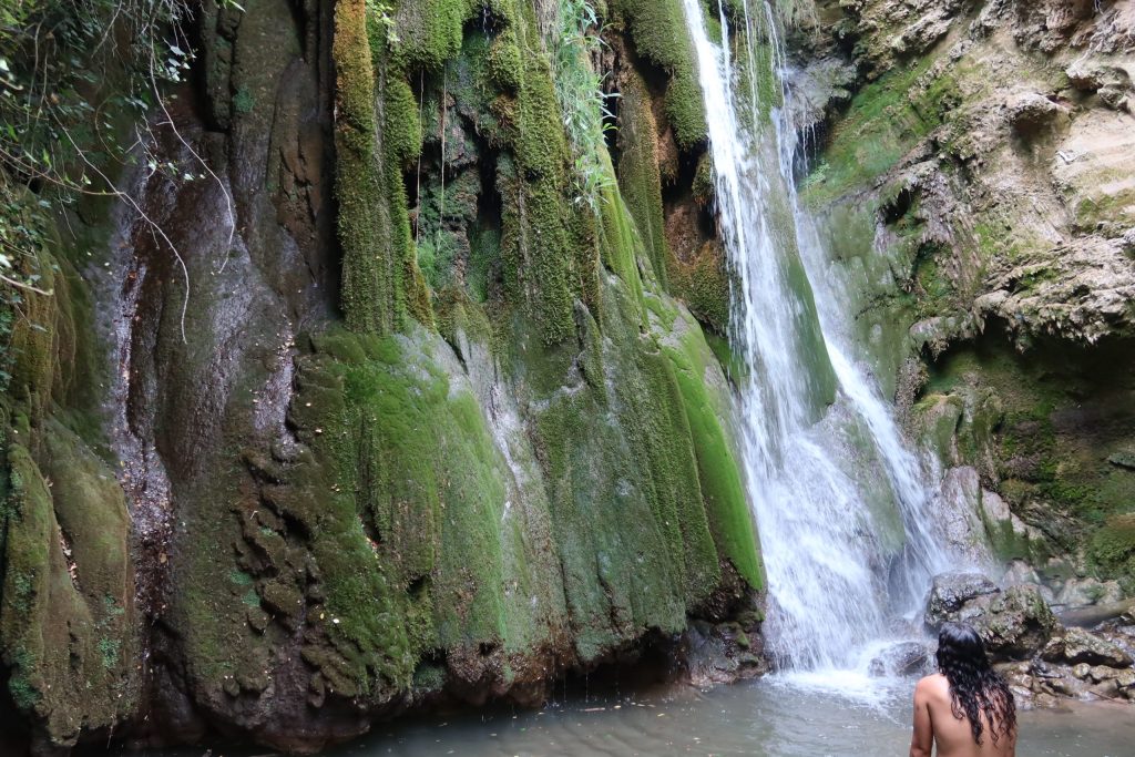 Después de esta primera ronda de reconocimiento tan positiva -y en la que confirmamos que justo había una feria medieval- fuimos a buscar la siguiente masa de agua prometida, que en este caso era la Cascada del Pozo de la Horca, un spot que perfectamente podría haberse ubicado en Hawaii o haber acogido el rodaje de una película sobre hadas del bosque. Estaba en sombra, así que no era lo que más apetecía, pero igualmente nos remojamos en ese chorro helado. Había que ponerse a punto para una gran noche de verano castellano-manchego.