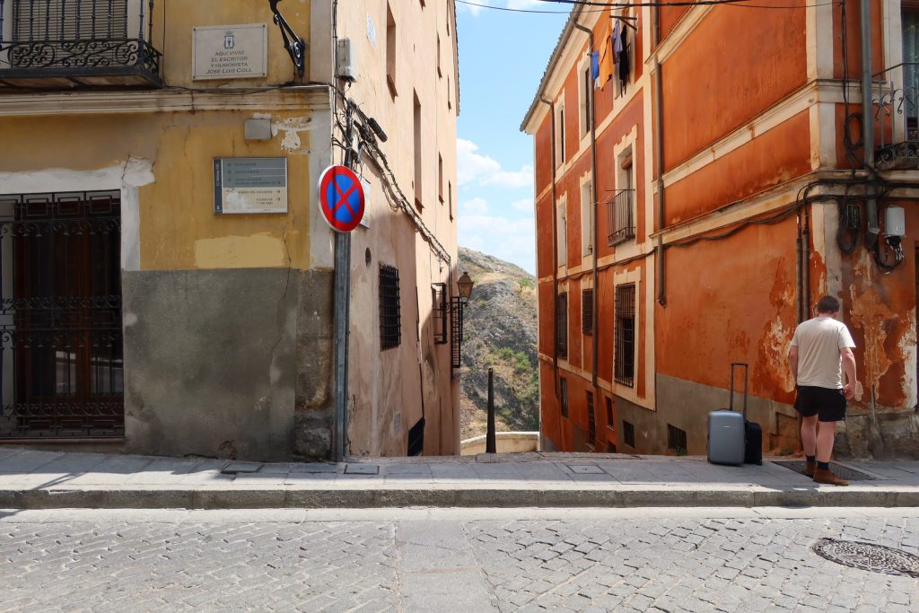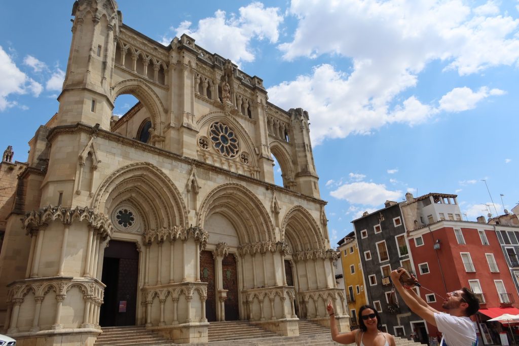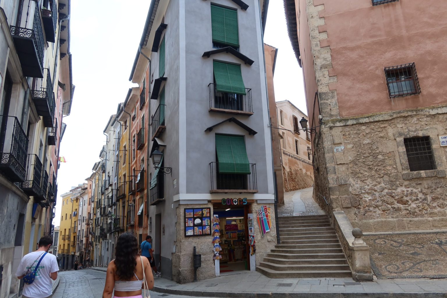 Resulta que Cuenca es espectacular (bueno, de hecho es Patrimonio de la Humanidad, como Toledo). Está engarzada en una especie de peñón, en un puesto de vigía natural, recortado por las montañas y el río. Pasamos muchísimo calor trepando hasta el casco viejo, pero lo cierto es que las casas colgadas merecen el esfuerzo y el paseo es precioso.
